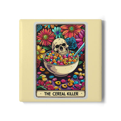Cereal Killer -Snarky Tarot Skeleton Ceramic Coaster - Colorful Floral Decor for Home Bar