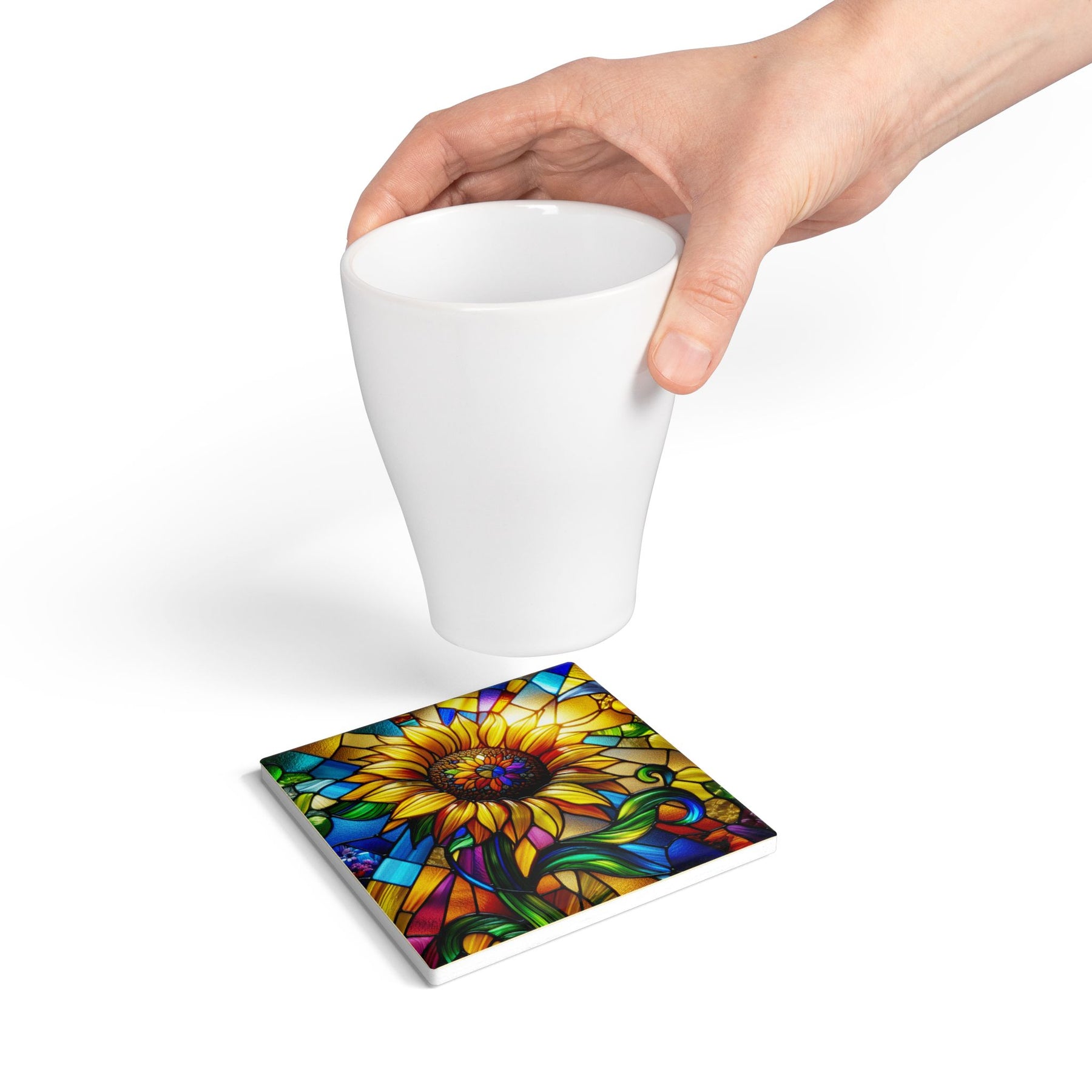 Stained Glass Sunflower Ceramic Coaster